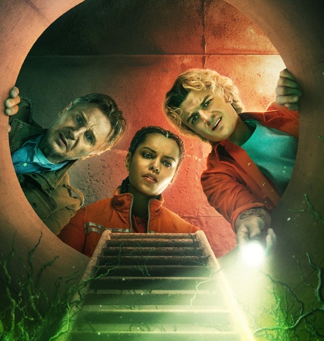 The film begins with an ‘eighteen years previously’ flashback back sequence. Robert Quinn (Liam Neeson) and Trini Romano (Lesley Manville) travel to Australia to contain and destroy all but a single sample of a lethal and highly adaptable fungus. The sample is stored in an underground military facility, safe, until the building is sold and turned into a regular storage facility by the time of the present day. This is problematic when the super-fast spreading fungus breaks containment and Robert must rely on minimum wage security guards Teacake (Joe Keery) and Naomi (Georgina Campbell) to help him save the day.